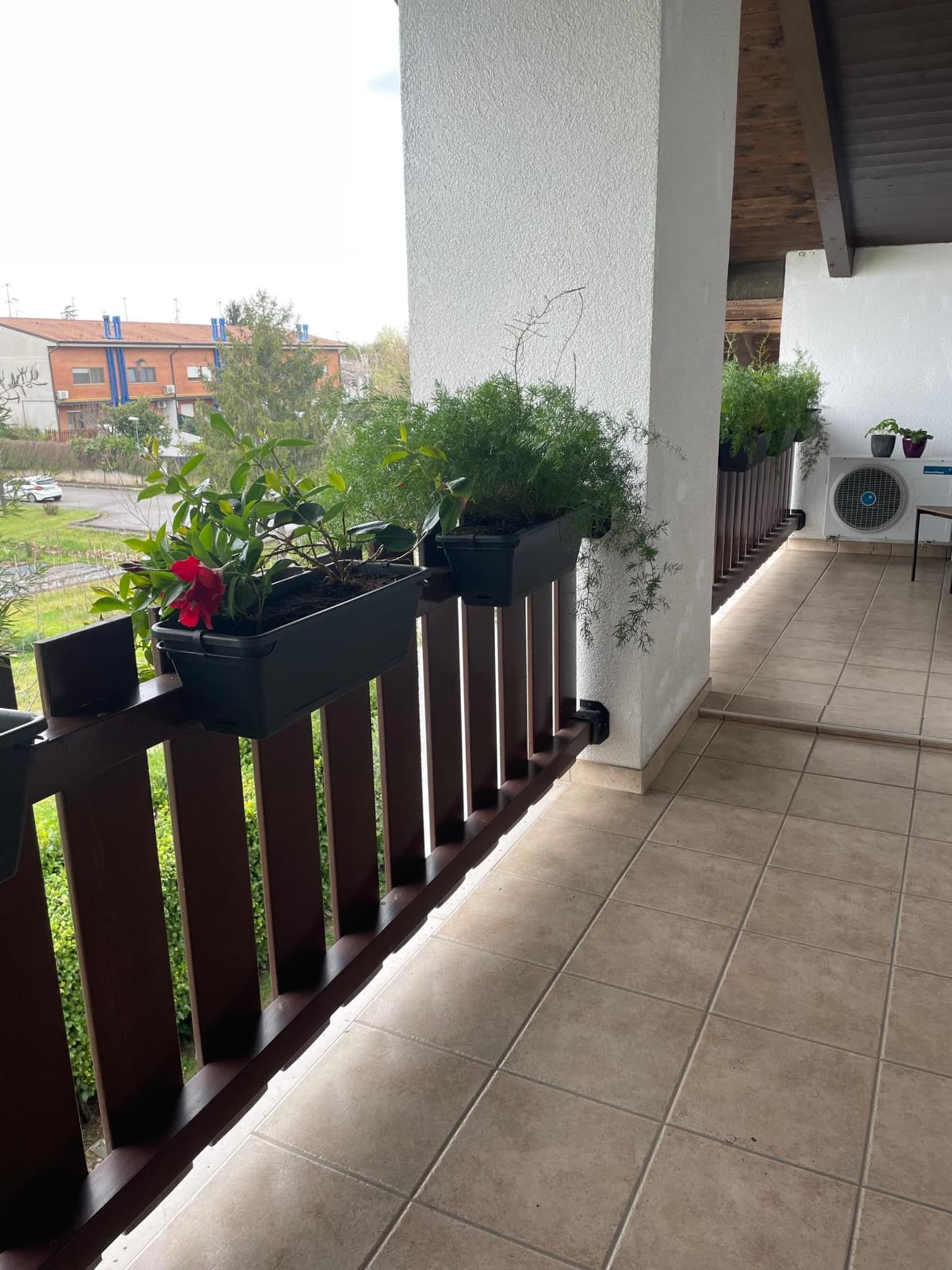 All’esterno troviamo la veranda di ca. 20 mq con vista sul rigoglioso giardino, la centrale termica ed una casetta in metallo per il ricovero di attrezzi da giardinaggio.