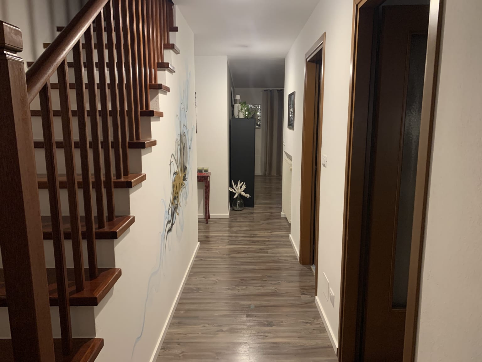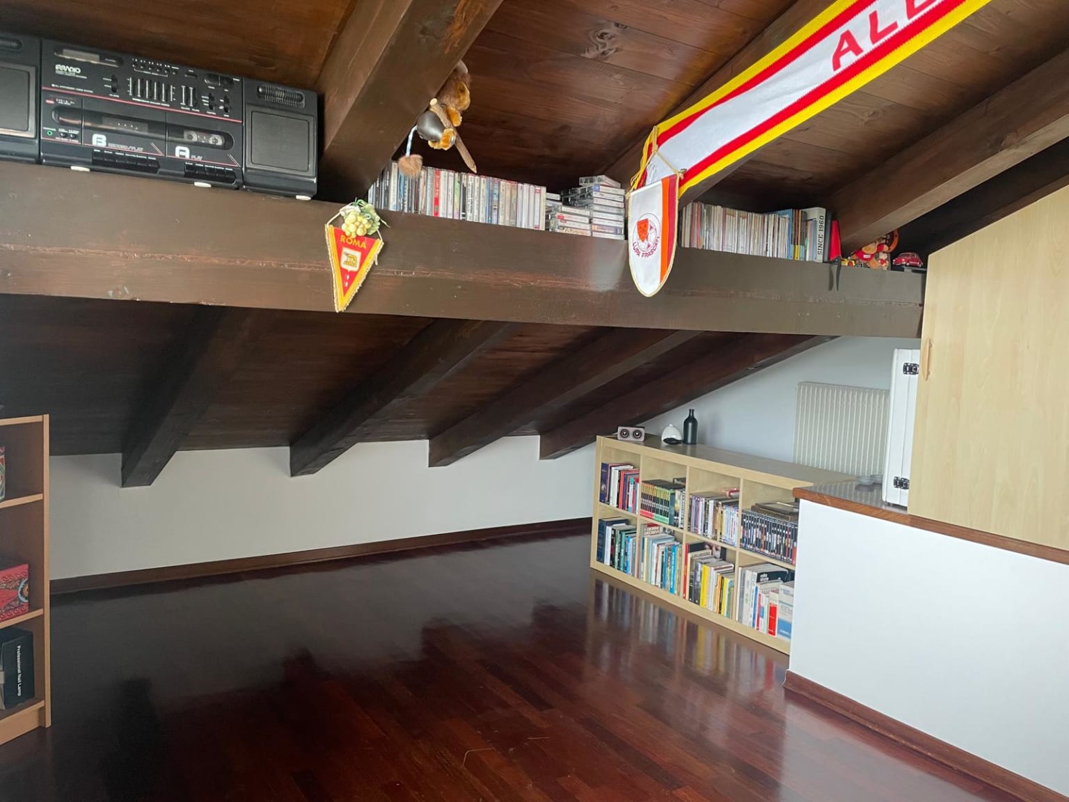 A lato del salotto, ampio ed illuminato da quattro grandi vetrate, parte la scala che sale al primo piano della villa composto da: un disimpegno, due camere singole molto grandi, una camera singola normale, due bagni con doccia ed infine la camera padronale di ca. 17 mq con bagno interno dotato di vasca idromassaggio. Salendo ancora ci troviamo nel sottotetto di ca. 60 mq per buona parte calpestabile dotato di pompa di calore e canna fumaria per eventuale installazione di una stufa.
